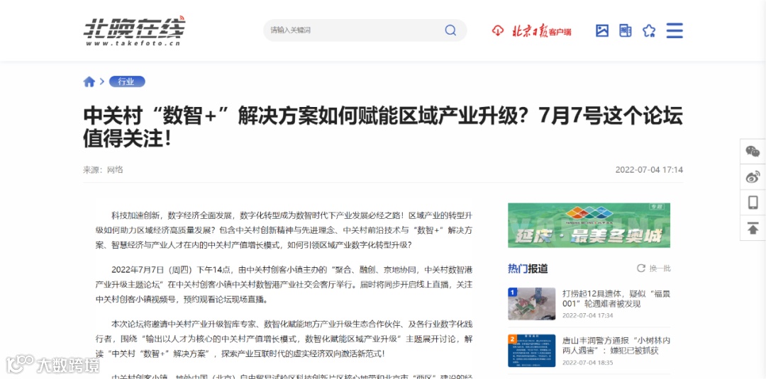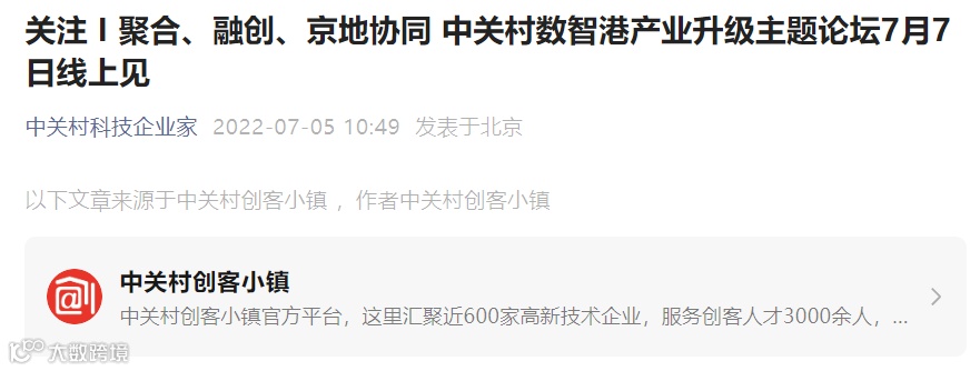 2022年7月7日(周四)下午两点,由中关村创客小镇主办的“中关村数智港产业升级主题论坛”在中关村创客小镇15号楼一层中关村数智港产业社交会客厅举行。届时将同步开启线上直播,关注中关村创客小镇视频号,预约观看论坛现场直播。