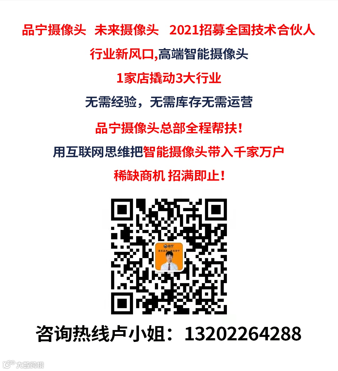 导读:品宁摄像头 未来摄像头2021招募全国技术合伙人行业新风口 高端智能摄像头1家店撬动三大行业无需经验,无需库存无需运营品宁摄像头总部全程帮扶!用互联网思维把智能摄像头带入千家万户稀缺商机 招满即止!