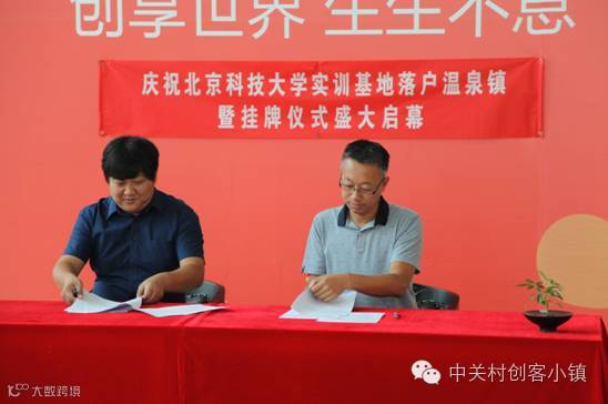9月22日,北京创客小镇科技有限公司与北京科技大学签订框架协议,并举行挂牌仪式,这标志着北京科技大学青年学生创业实践基地正式落户温泉镇中关村创客小镇。