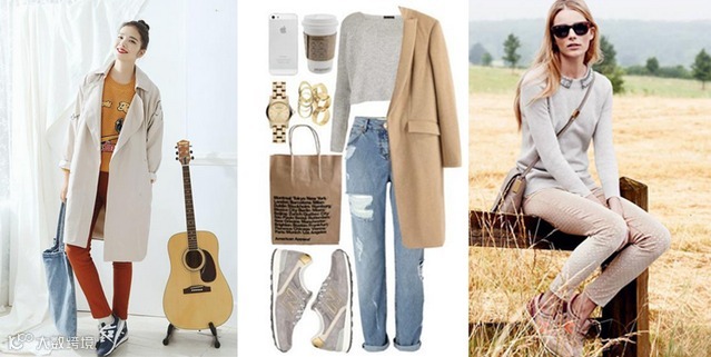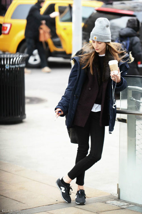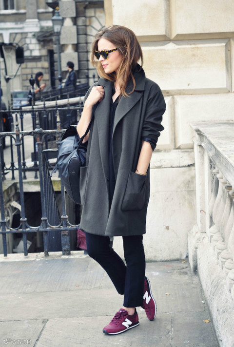 NB搭配打底裤,运动卫衣,简约的运动风,时装感的大衣外套增加了一丝时尚气息。