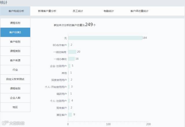 6、客户构成统计、员工工作量统计