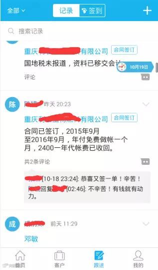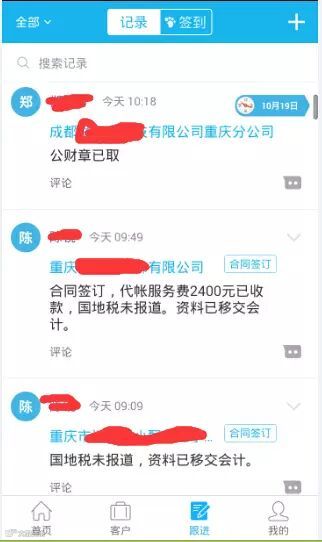 —>客户签订合同后,主管或业务员 将客户共享给需要参与的经办人员(报税人员、办证人员、记账会计等),并可以指派任务和完成时点。