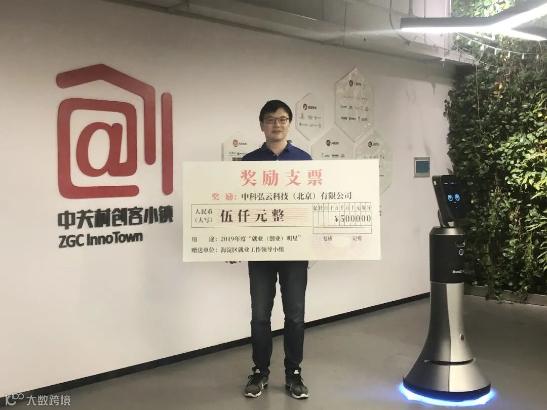 中关村创客小镇副总经理冯晓辉(右二)与获奖者合影