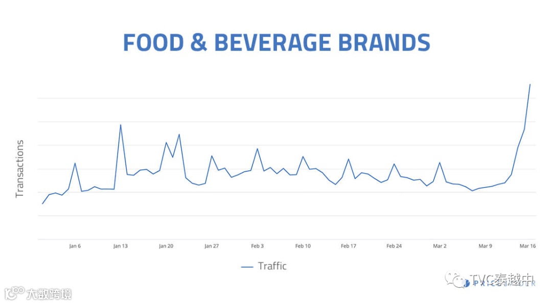 PriceSpider发现,仅在过去两周,健康和美容领域的品牌网站流量就比今年平均水平增长了86%,这些网站包括肥皂、洗手液、卫生纸等消费品。这一趋势还在继续增长,我们正在密切关注其他表明消费者购物行为发生重大转变的行业。这一转变可能会对消费品和食品饮料行业产生重大影响。