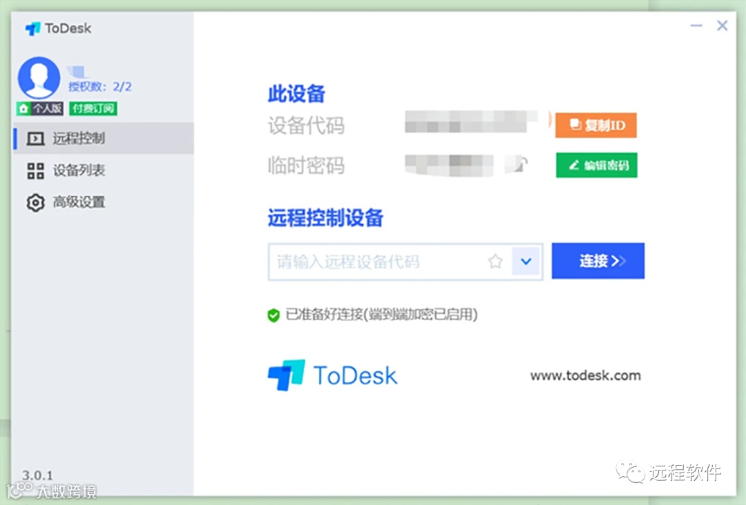ToDesk就是这样一款免费的专业远程控制、远程办公软件,可轻松适用于各种远程办公。无论是安装和操作个人感觉都非常简单,而且连接过程中的数据安全也完全不用担心,通讯数据使用端到端加密,连接密码仅存于您的设备。连官方也无法窥探您的桌面,以确保每次连接都是安全可靠的。