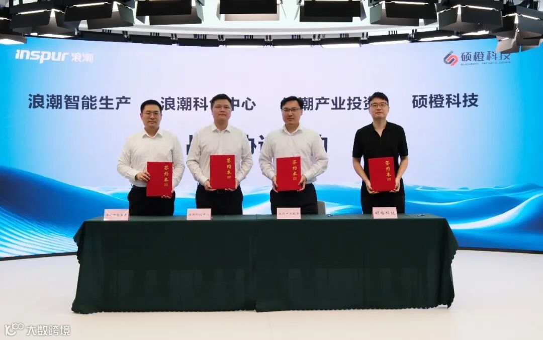 近日,硕橙科技与浪潮科创中心、浪潮产投、浪潮智能生产四方战略合作协议成功签署。浪潮科创中心总经理周海鹏、浪潮产投副总经理王振东、浪潮智能生产副总经理张昊彦,硕橙科技董事长兼总经理庄焰,硕橙科技合伙人、副总裁朴永焕出席签约仪式。