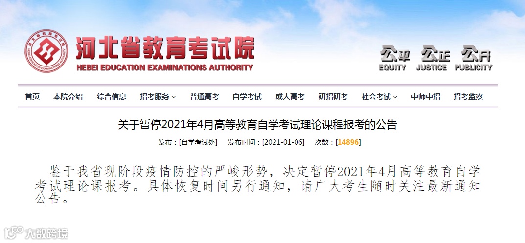 暂停2021年4月高等教育自学考试理论课报考