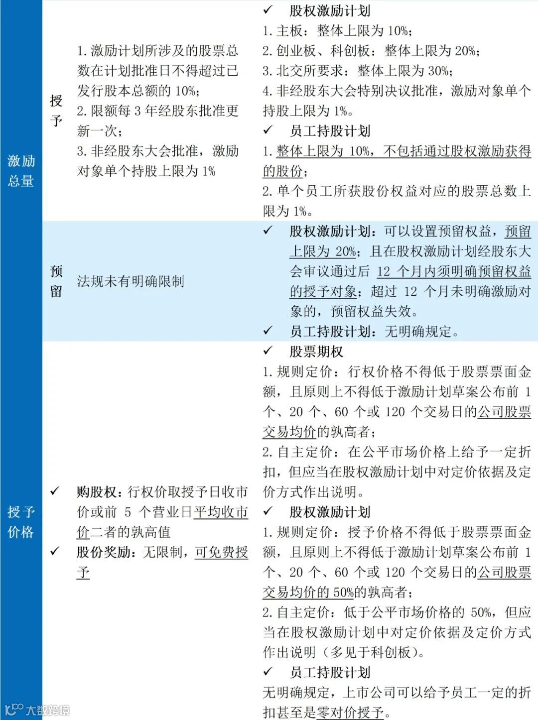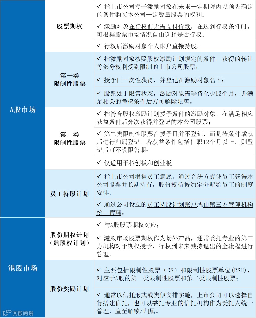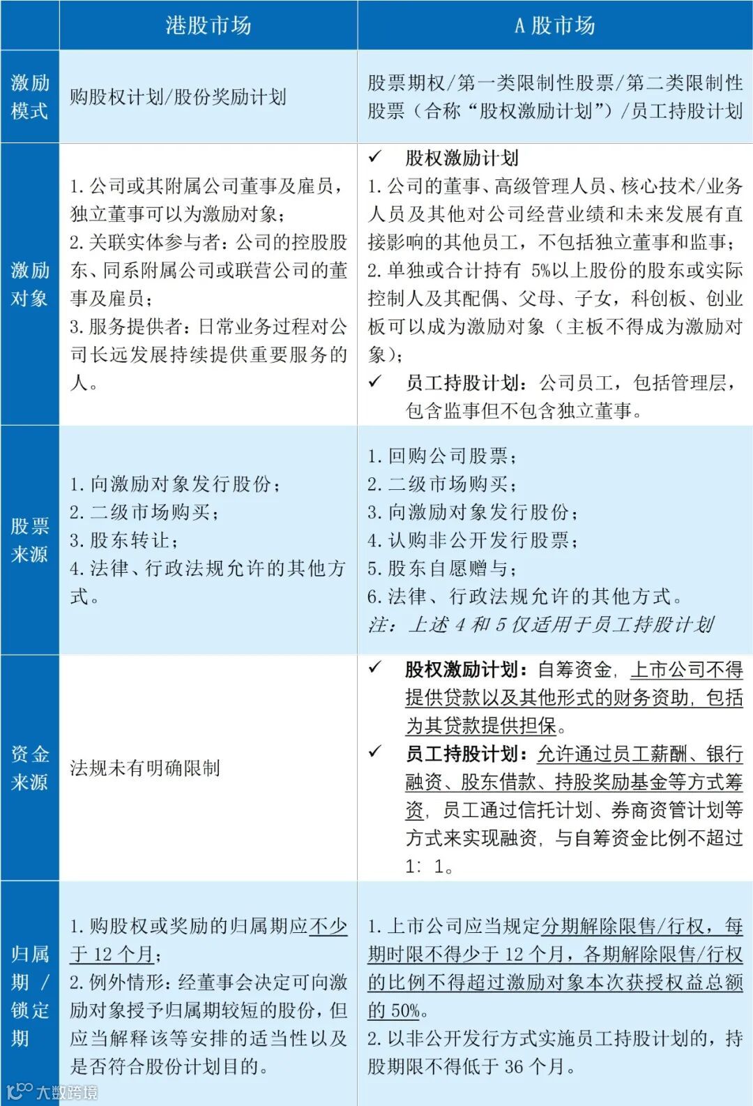 总体而言,A股和港股上市公司在股权激励层面还是存在一定的差异,港股的激励规则较为宽松,但从2022年《上市规则》对于“股份计划”章节的修订也能看出港交所参考借鉴了部分A股规则,修订后的条款与A股的规则有一定的趋同,主要目的还是为了提供与A股一致的监管框架,在对股份计划加大监管力度的同时,也保留了一定操作空间。