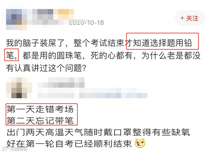 (以上行为因各地区考试严格程度不同,可能会对成绩有影响)