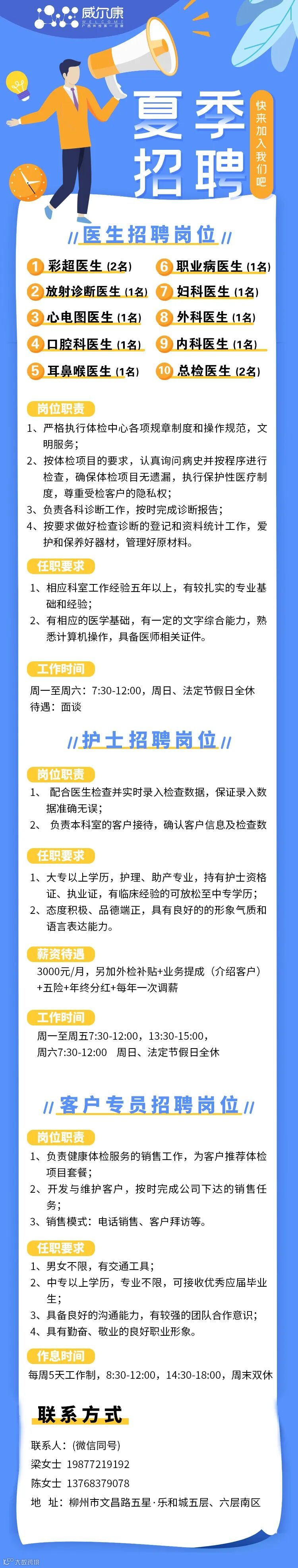 【招聘公告】柳州威尔康体检中心2022年夏季人才招聘