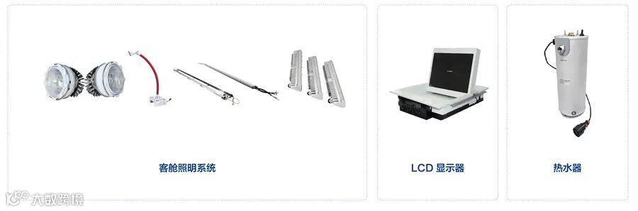 此外,民技公司还可为客户提供客舱照明系统、娱乐系统、厨房设备及航材附件等相关产品。客舱照明系统产品主要包括天空内饰LED彩灯、头等舱/公务舱和经济舱LED阅读灯;娱乐系统产品包括LCD显示器、游戏手柄;厨房系统产品主要包括烤箱、热水器,满足乘客实物加热、饮用热水等多种餐食服务要求。附件类产品主要包括线缆、薄膜按键等,可提供快速定制服务。产品适用机型涵盖空客A320、A330,波音B737、B747、B787等多种主流机型。