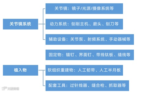 运动医学产品可主要分为关节镜系统和植入物,其中关节镜系统包括关节镜、动力系统和辅助设备等,是运动医学相关疾病的必备检查和治疗