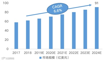 2019年,全球运动医学市场总规模为66.29亿美元;预计到2024年,将增长到91亿美元,复合年增长率为6.5%。运动医学作为大骨科重要的细分领域,占骨科整体市场10%以上份额,而且是未来骨科市场增长最快的细分领域之一。