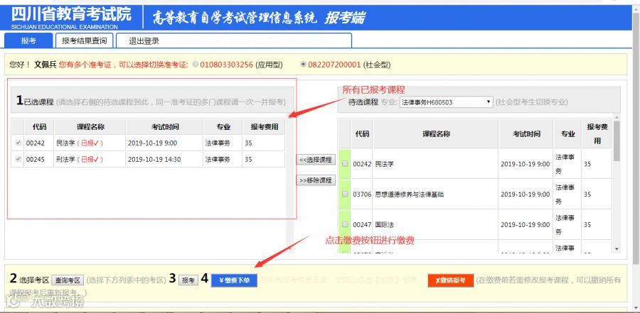 报考课程缴费