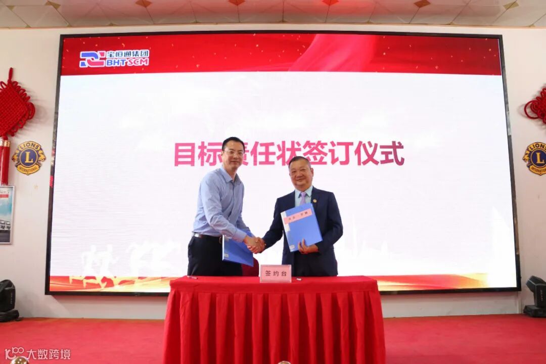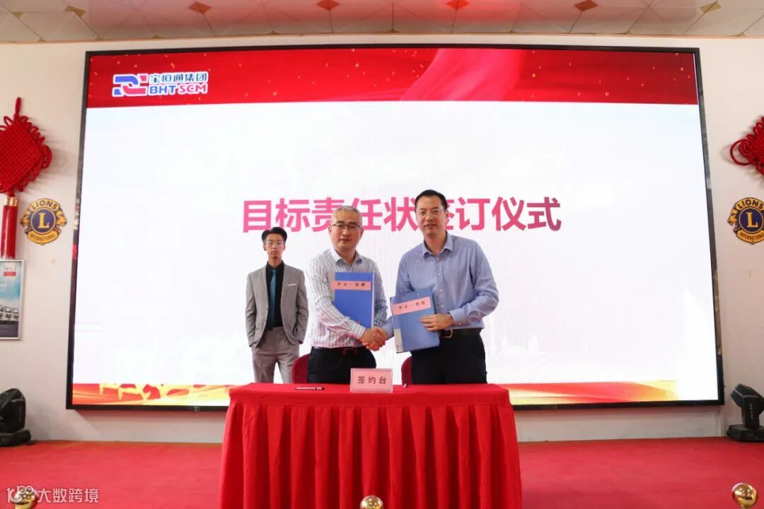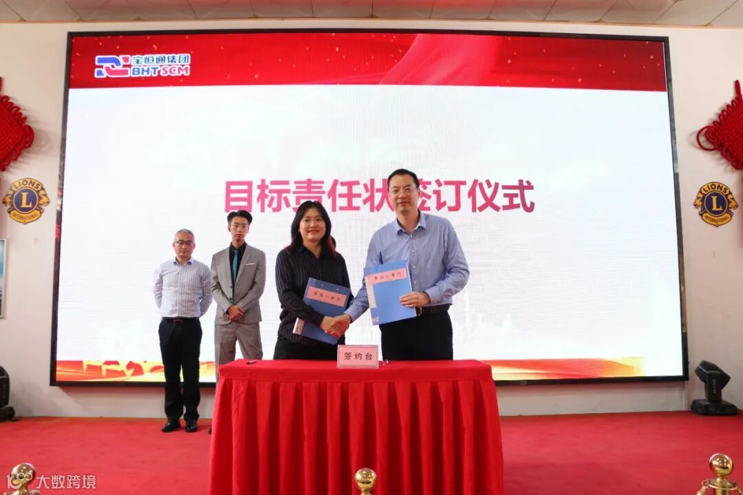 根据实业公司新一年的经营管理发展规划和绩效管理相关规定,大会安排新一年目标责任状签订仪式,首先由集团董事长肖德军与实业公司执行总经理罗鹏签订《2021年经营管理目标责任书》,然后由实业公司执行总经理罗鹏与与实业公司高层管理人员依次签约。