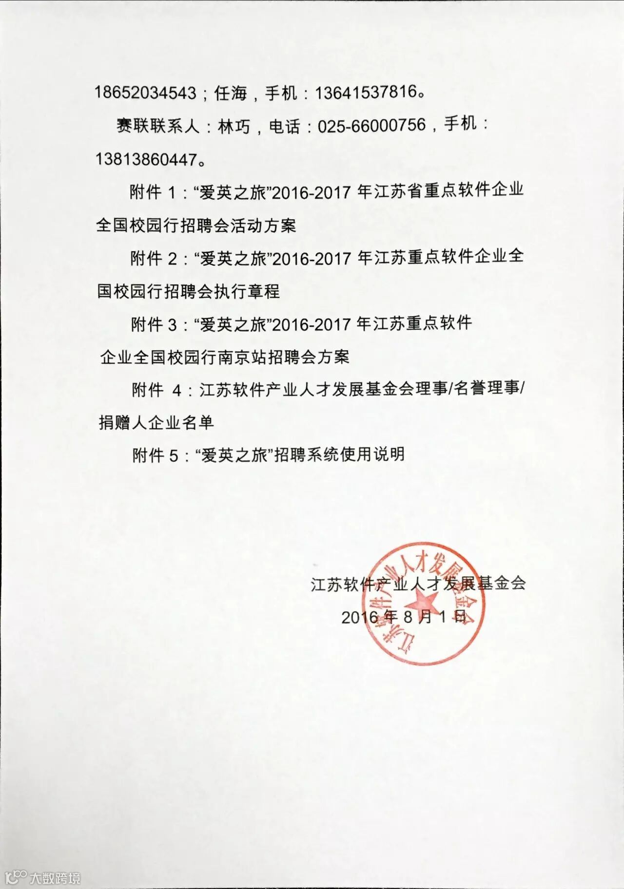 导读:报名截止日期:2016年8月15日,请有意向参加企业尽快报名。附件下载请访问江苏软件人才网-新闻中心-爱英之