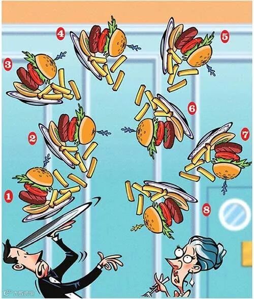 3、下图中翻倒的汉堡中只有两个是完全一样的。你能指出是哪两个吗?难度指数☆☆☆