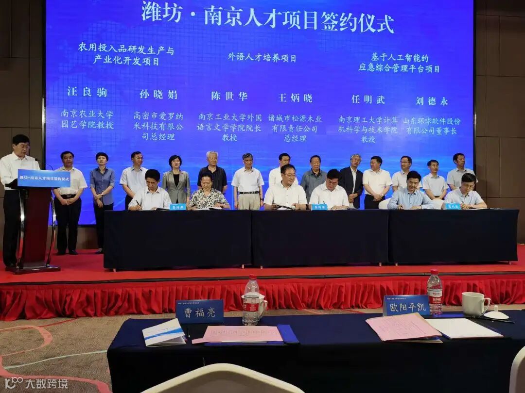 6月15日,由中共潍坊市委组织部主办的“潍坊·南京人才项目签约仪式”在南京举行,潍坊市委常委、组织部部长刘国伟等市直部门和县市区主要领导、南京工业大学校长乔旭等南京高等院校领导出席签约仪式,我司董事长刘德永参加活动。