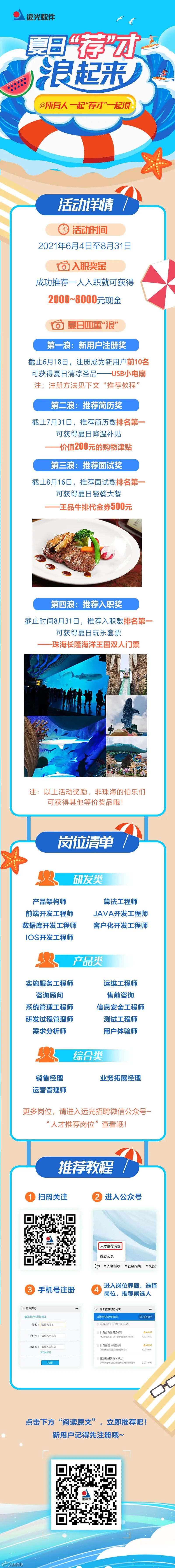 导读:远光夏季人才推荐活动热浪来袭!除2000~8000元丰厚入职奖金外,推出“夏日四重浪”活动,更多精彩好礼,速速参加活动吧!!!