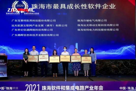 大会披露了2020年度珠海软件产业发展报告。报告显示,软件产业作为珠海的支柱产业之一,产业规模逐年增长,2020年珠海软件业务收入465.20亿元,同比增长10.46%。远光软件在“珠海市超亿元电力及新能源行业应用企业”榜单中排名第一,在“软件收入前十企业”榜单中排名第四。