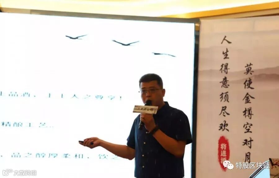 接下来就是雍总的闪耀时刻了,雍总对现在世界各地层出不穷的区块链技术与实体企业相结合的案例作了说明,证明了区块链技术落地实体企业的发展潜力。现如今,全球首款溯源白酒无疑是抢占了先机,力拔头筹。特股与上上品金樽应该把握此次机会,将全球首款溯源白酒的美名远扬,不仅仅是满足于当下已经获得的荣誉,而是要在荣誉之上再加力把上上品金樽打造成安徽省第五家上市酒企。各位代理商应该齐心协力把握时代的机遇,开启财富之门!
