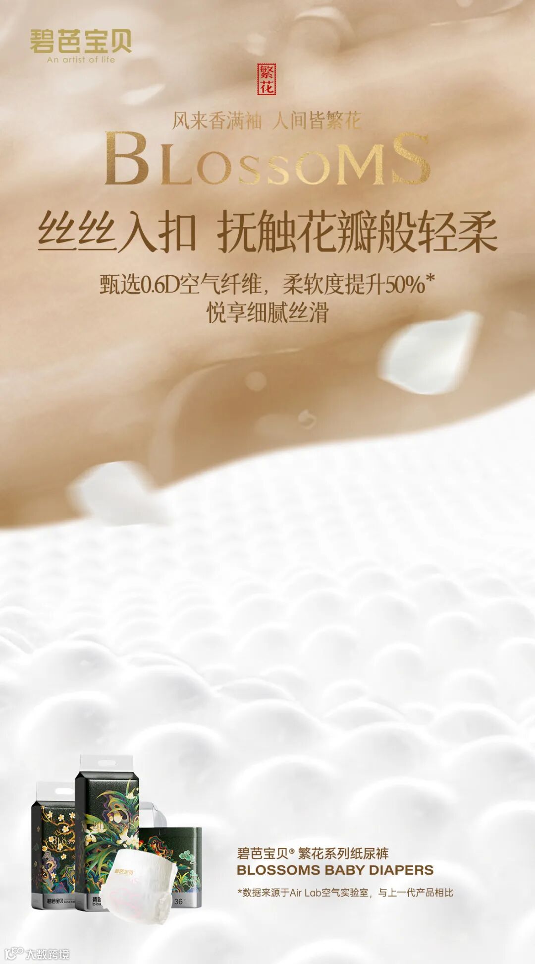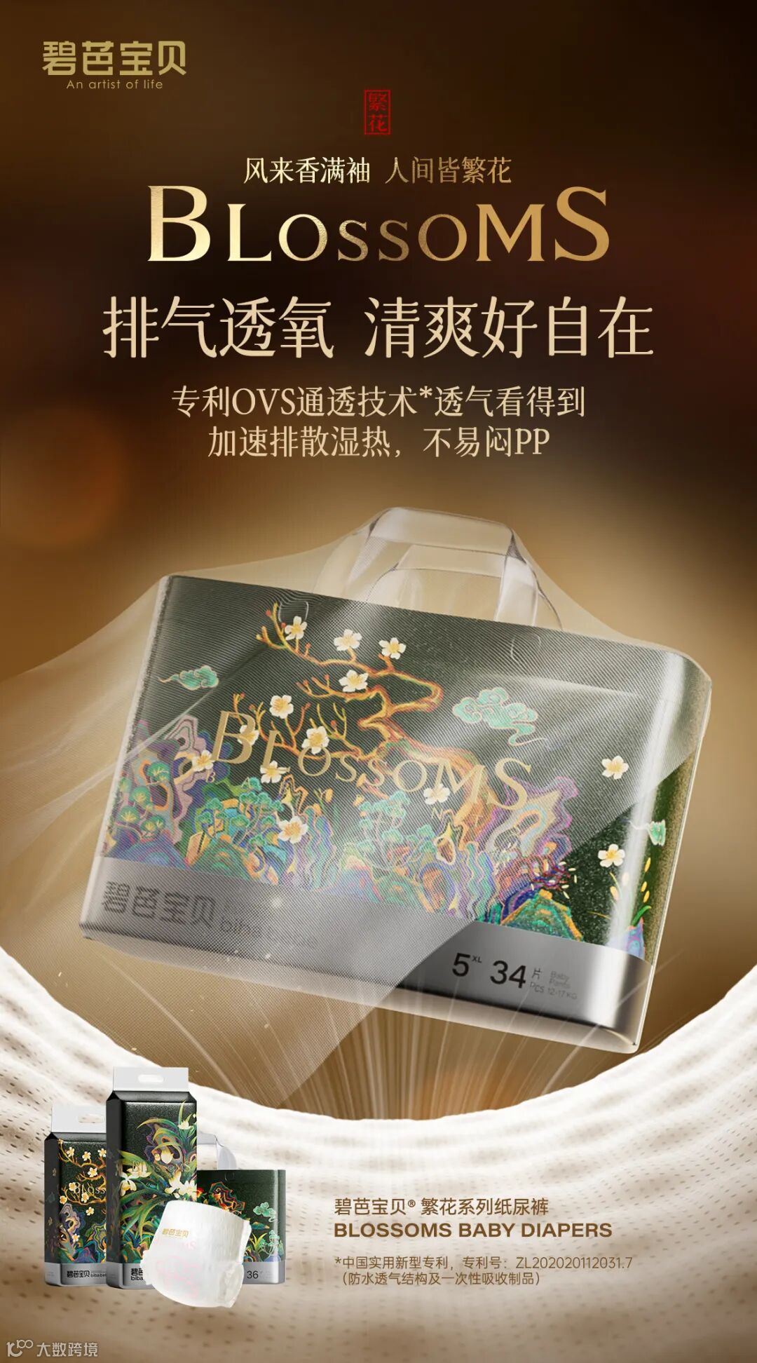选择天然、柔软、无刺激的材质,如表层的无纺布和底层的PE膜,这些材质通常具有良好的透气性,同时确保无臭无味,以减少对宝宝皮肤的刺激 。碧芭纸尿裤繁花系列0.6D空气纤维,确保宝宝使用时候屁屁的透气性。虽然薄的纸尿裤通常更透气,但也要确保其具备足够的吸水性。选择适中厚度的纸尿裤,以平衡透气性和吸水性 ,拥有OV S通透专利技术,加速排散湿热,不容易闷屁屁,透气看得到。