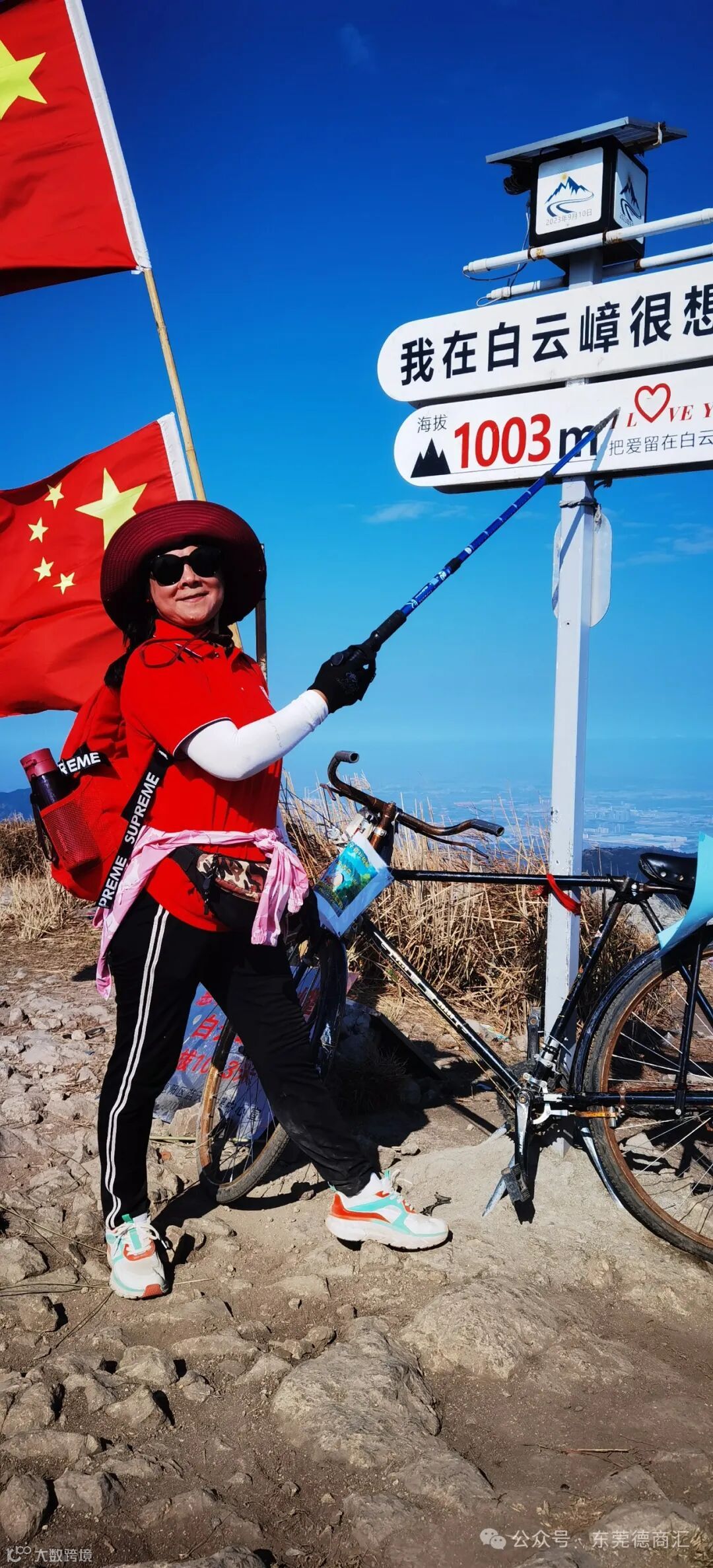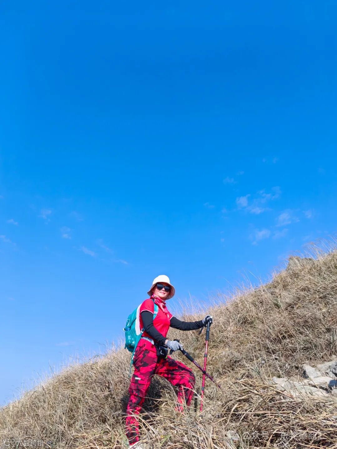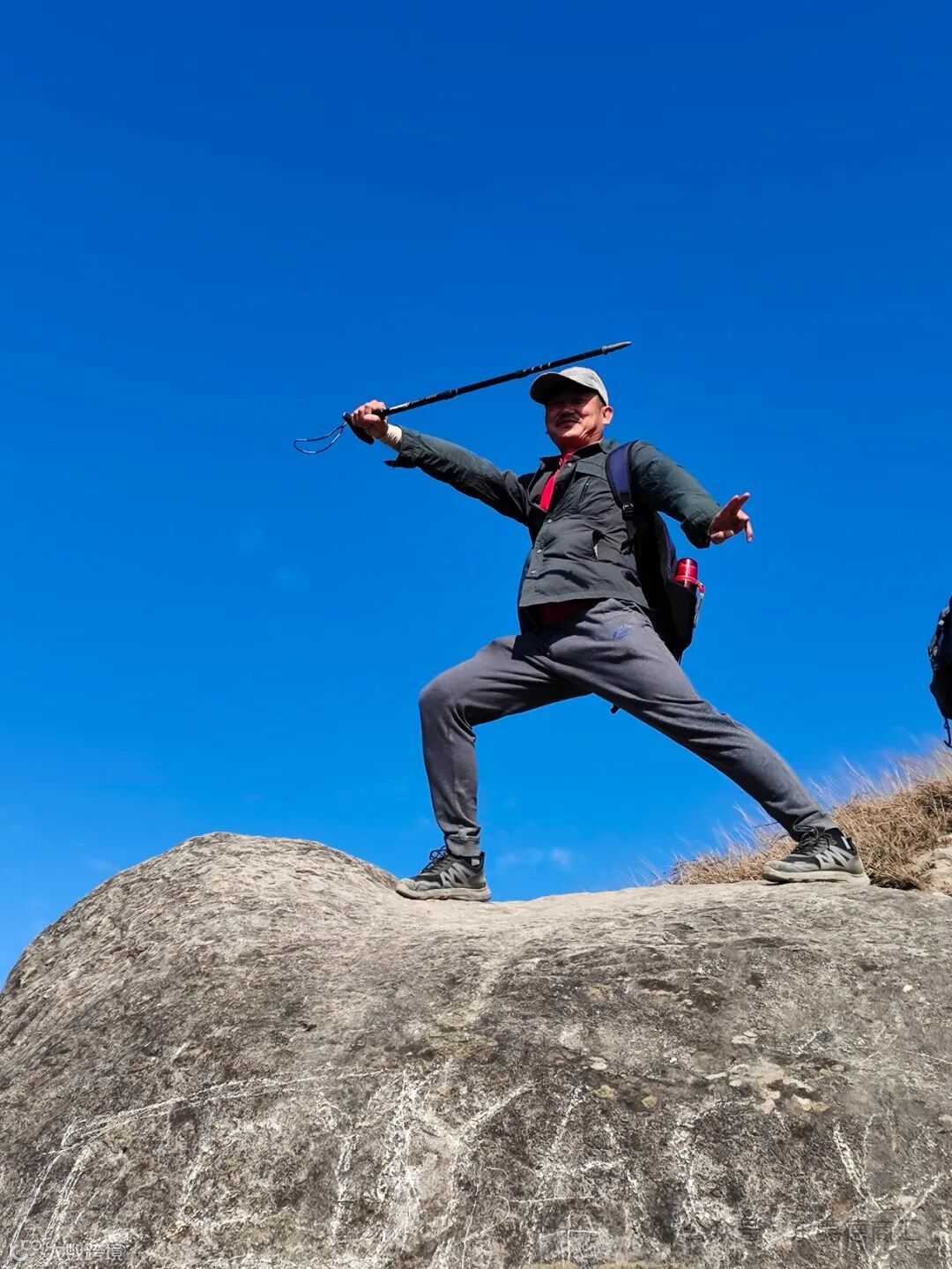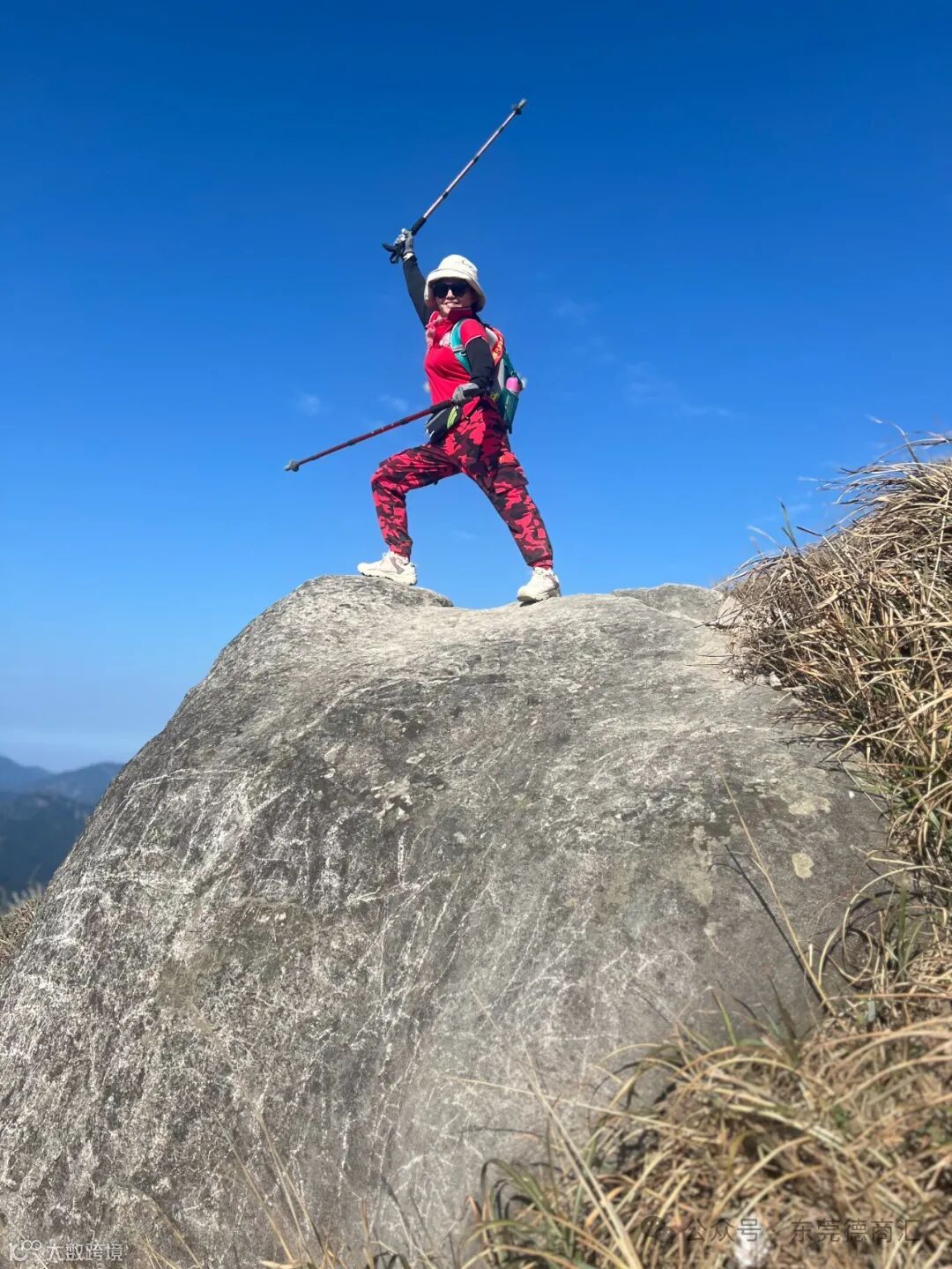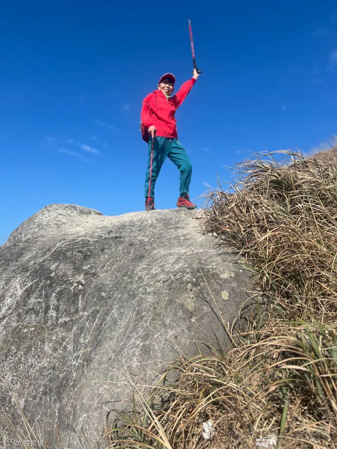 艳丽的阳光伴随着呼呼的北风,今日白云嶂顶峰上毫无昔日的白云漂浮缭绕,叠叠嶂嶂的群峰象一幅巨大的画卷铺展在蓝蓝的天空下,美不胜收,令人喜不自禁!攀登的陡滑艰辛顿觉一扫而空。这种彻底的放空便是我一次又一次的选择出发…