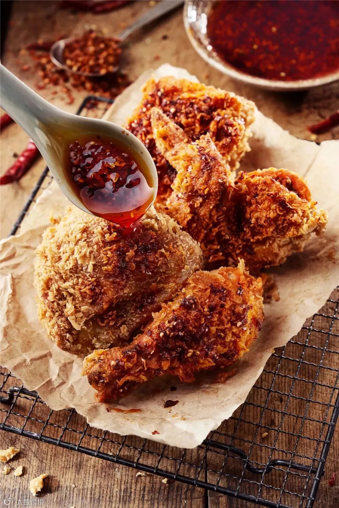 香辣金黄色的鸡腿,泛着诱人的色泽