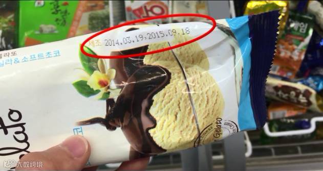 ☞在某家超市里,记者就发现了一种韩国进口的雪糕,单价15元一支,它外包装上标注的生产日期是2014年的3月份,保质期为18个月,即它离过期只有两个月时间了。