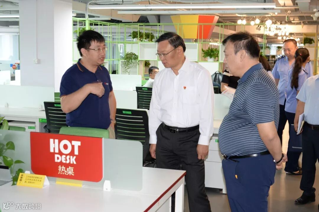 冀岩局长一行首先参观了中关村创客小镇的众创空间。期间,在创客小镇胡堃总经理的介绍下,领导们对小镇的智慧孵化服务、共享办公服务、众创引擎服务等有了初步的了解,并表示创客小镇办公环境良好,有利于初创企业的发展。