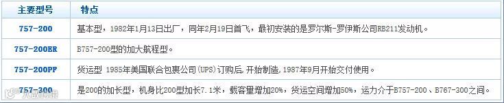 波音757:双发窄体中远程运输机,与同期研制的波音767具有较高的互换性。