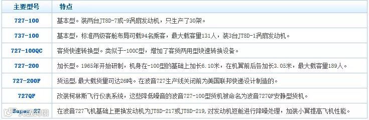 波音727:首款三发喷气式民航飞机,一度是世界上最受欢迎的中短程机型。