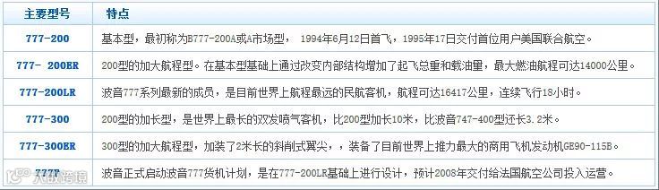 波音777:双发宽体客机,介于B767-300和B747-400之间,具备灵活的座舱布局及高效益特点。