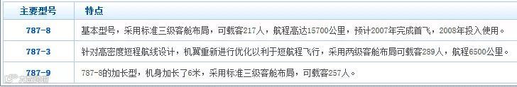 波音787梦想飞机:中型双发宽体客机,采用复合材料制造,强调低燃料消耗和高巡航速度。