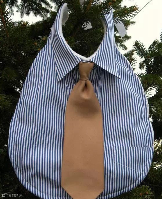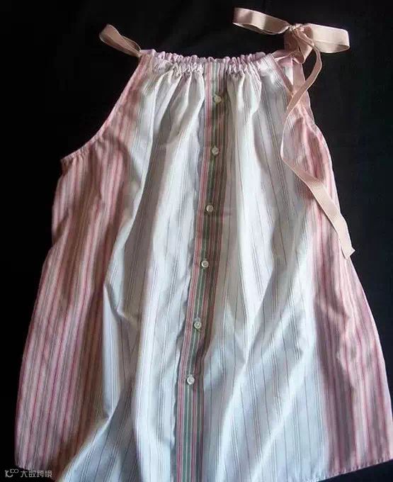 袖子展开做宽吊带,领子做那一节抹胸,完全没浪费。爸爸你的衬衫为我而生。