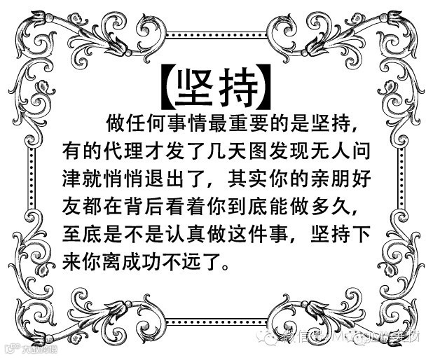 做微商,最怕的几个字就是“试试”、“等等”、“看看”、 “想想”没什么犹豫的,要么就不做,要做就努力做,尽全力做最好。 太多人来说做代理,先发图试试,发了两天人就没了,所以你必须有货,这样才有动力,才能坚持。微商路才能长久,才能赚到!!