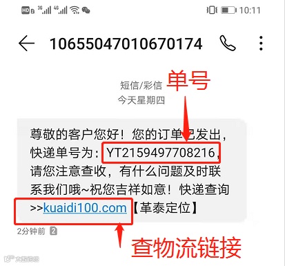 下单付款后,在当天的18:30之前你手机会收到我们的物流信息单号,和查快递链接。