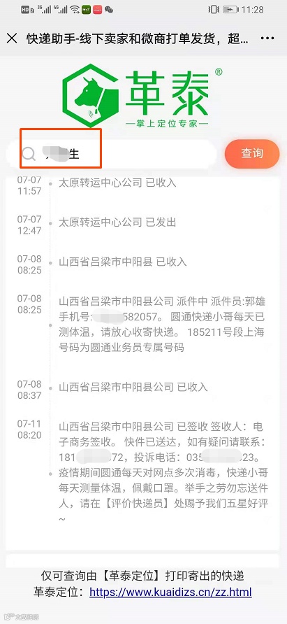 点击查物流链接,输入你的名字或者手机号码,你的实时物流信息就出来了