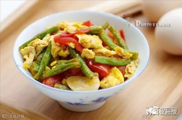 4.另起锅,再次加入少许油,油7成热时,将豇豆倒入翻炒2分钟,再放入西红柿炒1分钟;