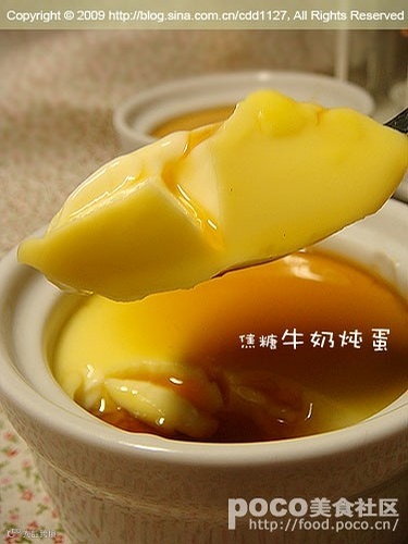 【注意】:蒸的时候要用小火,切勿用大火,否则会失败!更重要的是要一直在炉边看着,大概可以的时候用牙签插进去取出,看是否已完全凝固。要炖得嫩滑必须细心和有耐性。最后,蛋黄也不要浪费,用剩下的大概70毫升的牛奶,以同样方法可做出黄色的炖蛋哦~