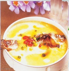 附注: 如家常做这道菜,家中无蒸笼,可在锅中加水适量,汤碗底垫上盘子放在水中,将锅置旺火上烧即可。