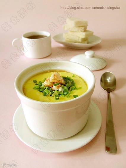做法:材料摆好,倒入蛋汁,蒸熟后滴几滴香麻油即可