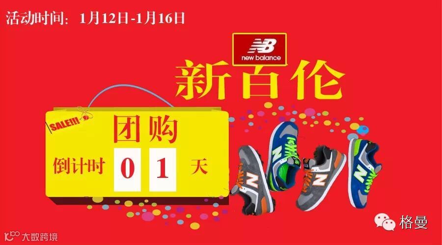 为了感谢亲们对格曼官方旗舰店的支持,为了回馈我们的客户,我们在1月12日特意举办了新百伦团购专场活动,是为了让更多的NB粉丝们能够用便宜的价格拥有正品的NB鞋,因为正品的价格比较贵,很多朋友只能远观而不能拥有,现在你们的机会来了!