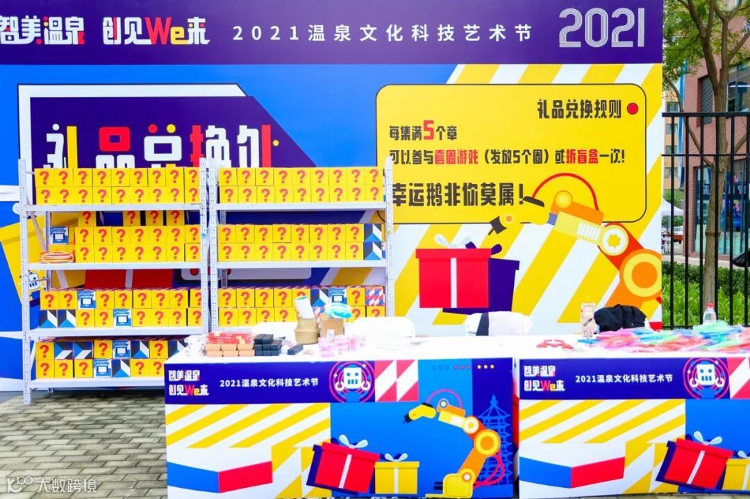 本届艺术节的双创市集,涵盖了温泉主题展、科创市集、文创市集、烧脑运动会和童梦创乐园五大板块,围绕“智美温泉 创见WE来”的主题,通过展览展示、游戏竞技、网红打卡等场景化、沉浸交互的方式展开。