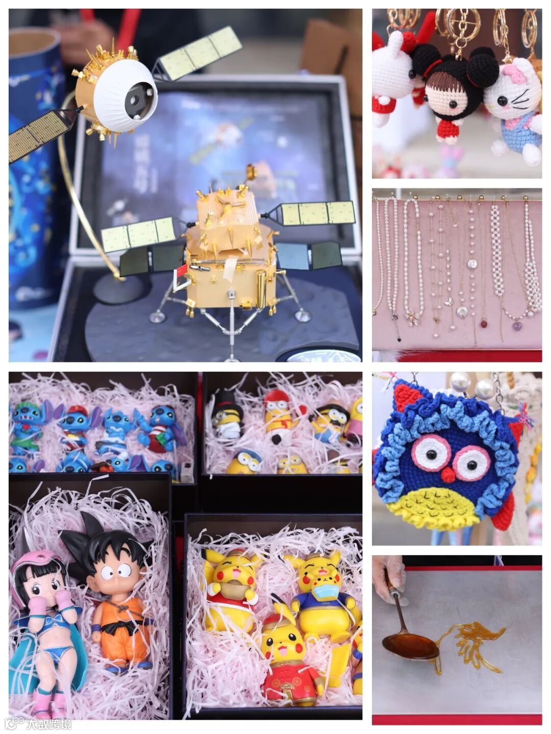 最美人间烟火气,热闹非凡的美学盛会。砂石画创作与体验、非遗糖人、手工雕刻文玩、精致天然淡水珍珠饰品手作、摩洛哥进口仙人掌种子手工皂,还有清华大学美术学院设计开发的潮流原创纪念品。