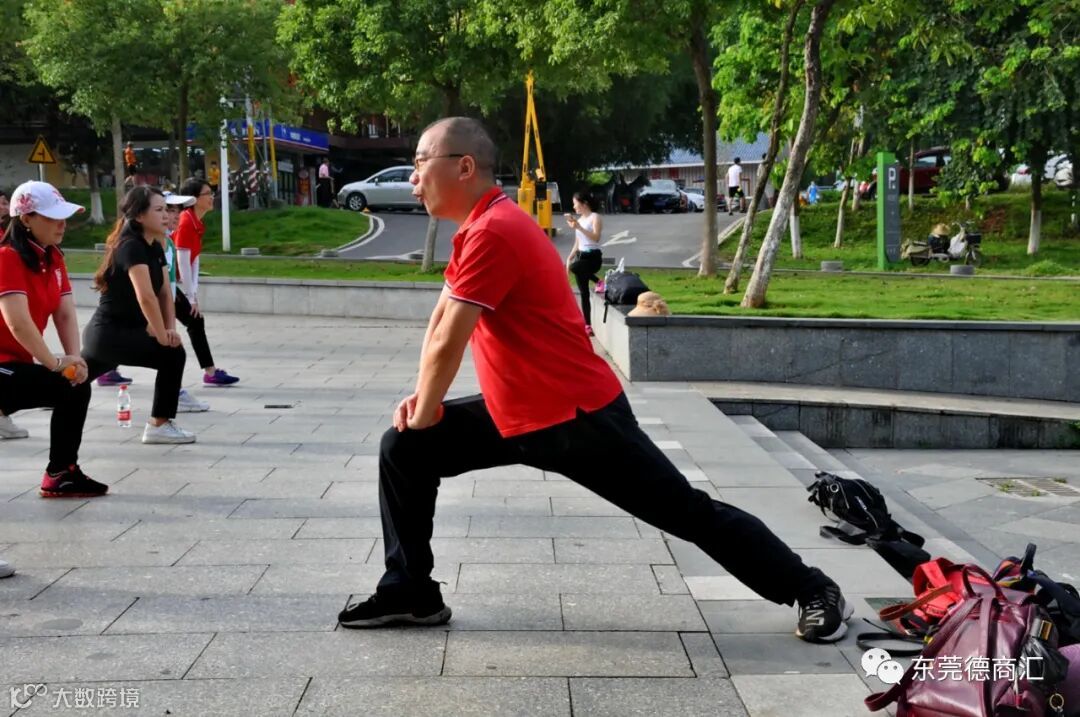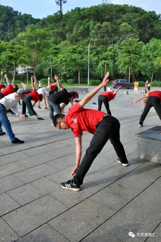 包队长带领大家一起做热身操