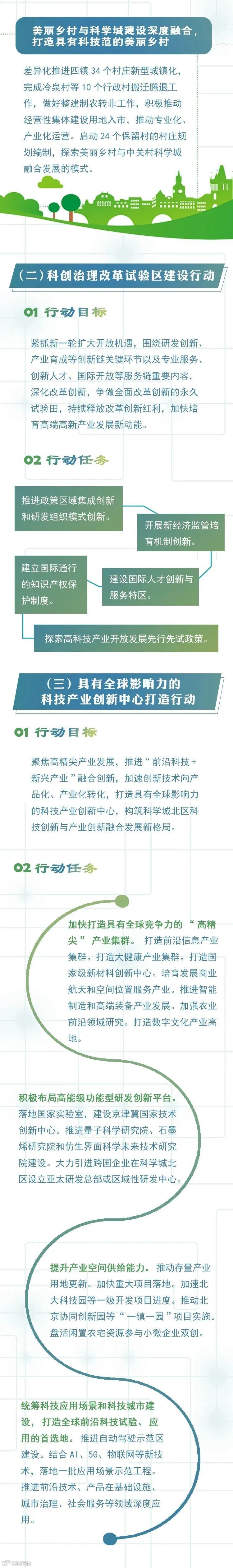 中关村科学城北区发展行动计划围绕园区向城区,园区融于城市转变的主题主线,紧扣制约区域发展的重点难点问题,有针对性地补空间短板、强要素弱项,通过一批特色产业园区建设和“美丽乡村”建设,打造高品质城市新形态和具有全球影响力的科技产业创新中心,为中关村科学城北区建设,画出了明确的时间表和路线图。