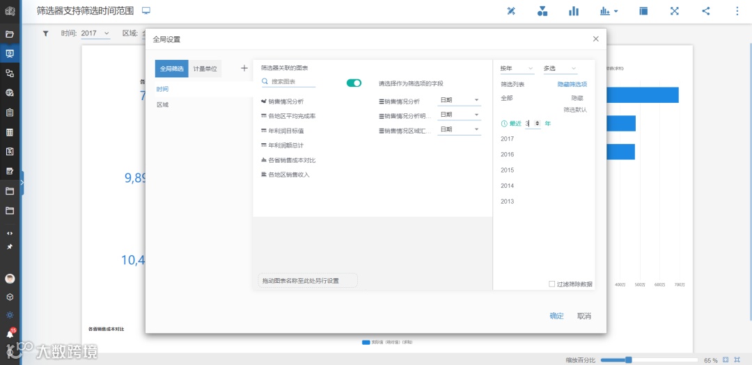 全局筛选是远光Realinsight的重要功能和一大特色,它可以在进行时间筛选时选择最近一个时间范围内的数据,以便随着数据更新而自动更新数据。近期,Realinsight团队对此功能进行了优化,实现了最近时间范围的多选,从仅能查看最近一年、一月升级为可同时查看最近N年、N月,大幅改善了用户的图表查看体验。