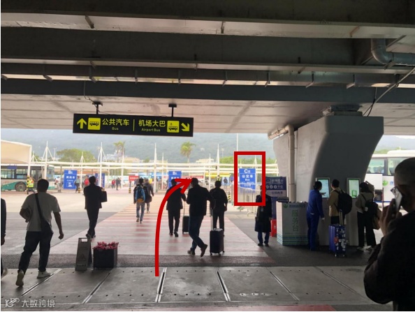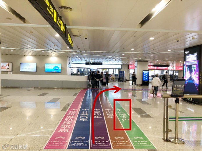 需要乘坐机场快线的旅客,请根据绿色地贴指引,先在到达大厅内珠海机场快线售票点内购票,然后从到达大厅(03)出口出来前行40米右侧到达一层机场快线上客区(D区)。