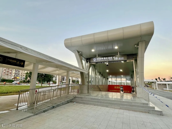 需要乘坐珠机城际列车的旅客,可在一层到达大厅(03)出口右转后按照指引标识、沿高架桥底和风雨连廊步行约500米,到达铁路珠海机场站1B出入口,然后进站购票乘坐相应列车。